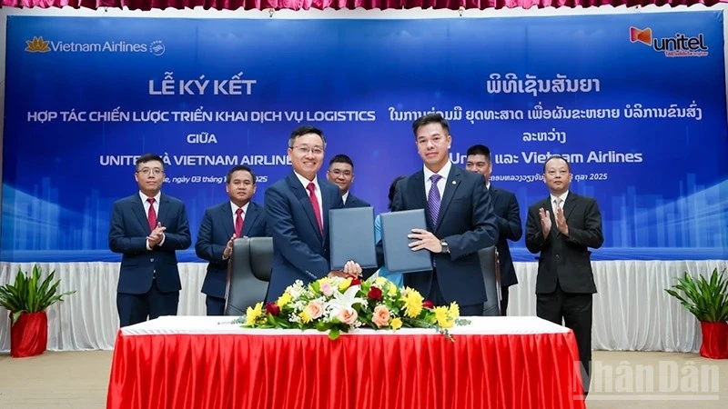 Ngày 3/10, tại thủ đô Vientiane, Lào, Vietnam Airlines và Công ty Star Telecom (Unitel) ký kết hợp...