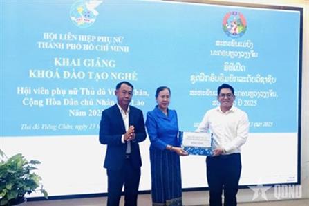 Hội LHPN TP Hồ Chí Minh hỗ trợ tổ chức 2 lớp đào tạo nghề về làm móng nghệ thuật và chăm sóc tóc cho 20 hội viên phụ nữ Thủ đô Vientiane. 12122